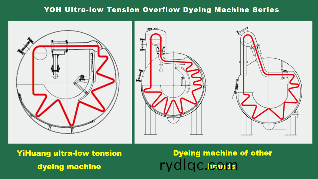 Advantage 1 : In terms of color change and washing tank , the"Yihuang" ultra-low tension dyeing machine cleans more thoroughly and more efficiently.